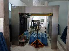 港九通桶裝水碼垛機(jī)采用進(jìn)口三菱PLC微電腦控制、威綸人機(jī)介面操作,運(yùn)行參數(shù)及動(dòng)作過(guò)程均可在觸控屏上自由調(diào)節(jié)。具有故障停機(jī)、報(bào)警、等功能。該機(jī)升降運(yùn)動(dòng)位置均設(shè)光電檢測(cè)保護(hù)開(kāi)關(guān),機(jī)器運(yùn)行時(shí),如果檢測(cè)部位檢測(cè)到異?,F(xiàn)象產(chǎn)刻停機(jī)并報(bào)警,很大程度上保護(hù)了生產(chǎn)人員及設(shè)備。 深圳市港九通飲料機(jī)械設(shè)備有限公司,是一家專業(yè)研發(fā)生產(chǎn)銷售自動(dòng)碼垛機(jī),自動(dòng)套袋機(jī),自動(dòng)洗桶機(jī),數(shù)控堆疊機(jī),蒸汽收縮機(jī),飲用水灌裝機(jī)成套生產(chǎn)線等機(jī)械設(shè)備的生產(chǎn)加工科技企業(yè)。 桶裝水碼垛機(jī)設(shè)備占地面積少,運(yùn)行費(fèi)用低,可將五加侖水瓶按要求疊成1-3層(每層4*4=16桶或任意),以便于運(yùn)輸和存放,整臺(tái)設(shè)備只需一人即可輕松操作,很大程度上減輕了員工的勞動(dòng)強(qiáng)度及降低整個(gè)生產(chǎn)線的人員編制.桶裝水碼垛機(jī)采用滑道式自重力進(jìn)瓶,侍機(jī)狀態(tài)無(wú)功率消耗,能耗極低;內(nèi)置接近信號(hào)檢測(cè)機(jī)構(gòu)跟據(jù)產(chǎn)量自動(dòng)調(diào)節(jié)堆疊速度達(dá)到與灌裝出瓶線配套。